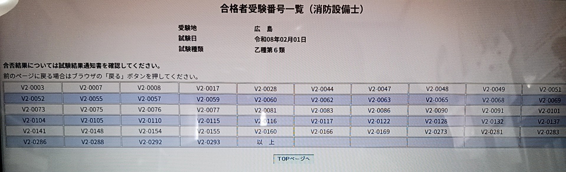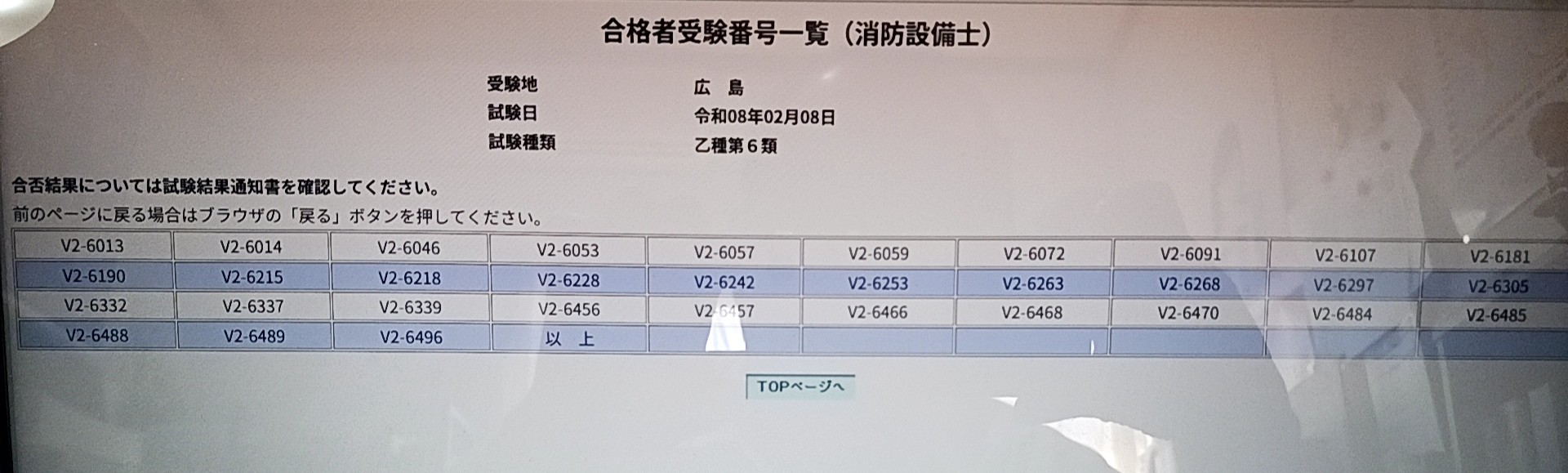 残念ながら私の受験番号はありませんでした。V2-6094はありませんよね?