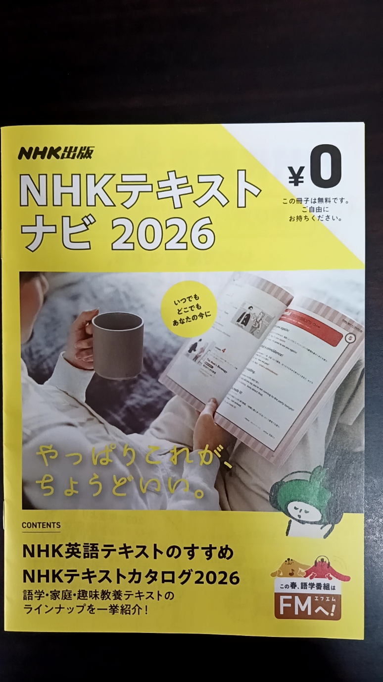 3月の初めに書店で「NHKテキストナビ2026」をゲットして、今年度はどれにしようかなと考えていました。
